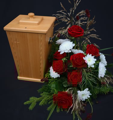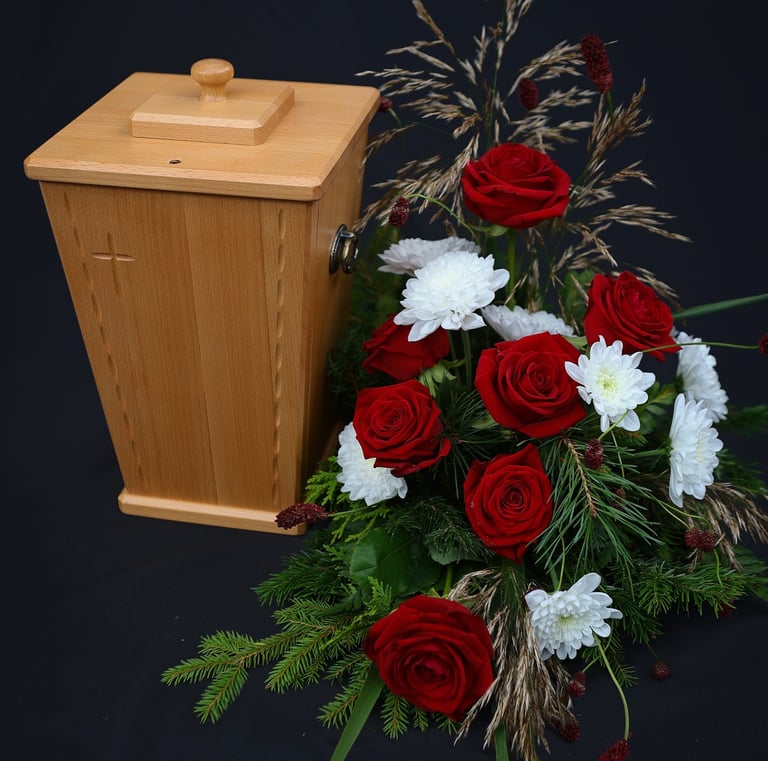 Toimitamme surulaitteet, surukimput ja muistopöydän kukat Kokkolan alueen kirkkoihin ja kappeleihin.