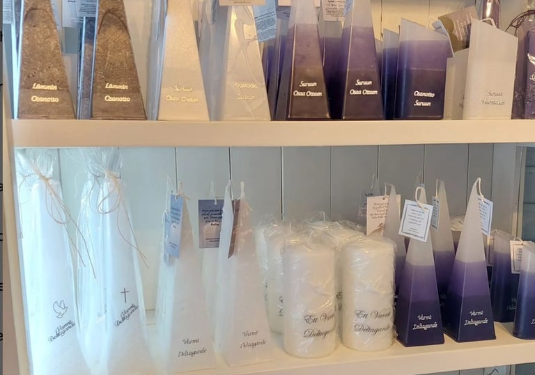 Myymälästämme löytyy erilaisia muistokynttilöitä ja hautalyhtyjä.