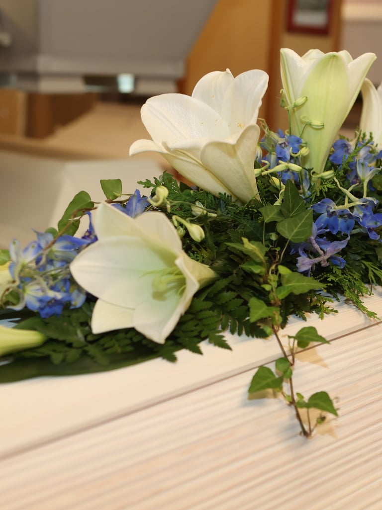 Toimitamme muistotilaisuuksiin suruvihkoja ja muita kukkalaitteita, aina asiakkaan toiveet huomioiden.